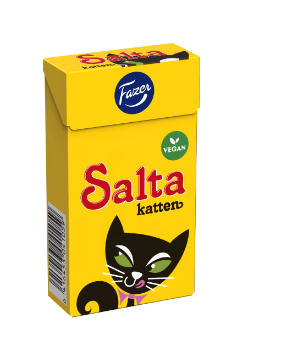 En tablettask med Salta Katten från Fazer är en klassiker hos många. Salta Katten är klassiska pastiller med smak av salmiak och lakrits i olika former av katter. Perfekt godis för både barn och vuxna.